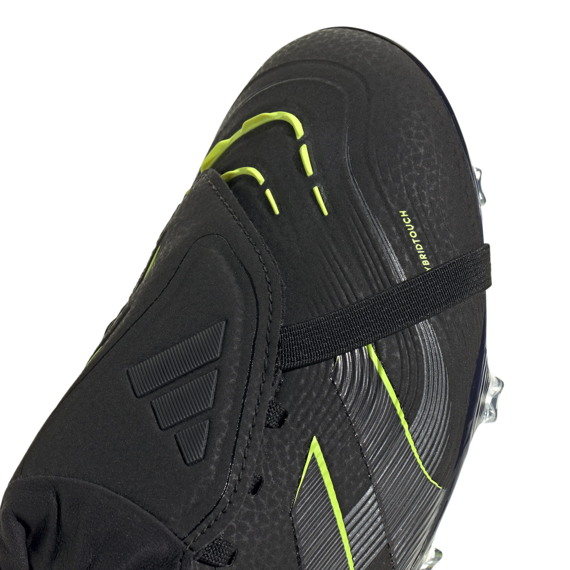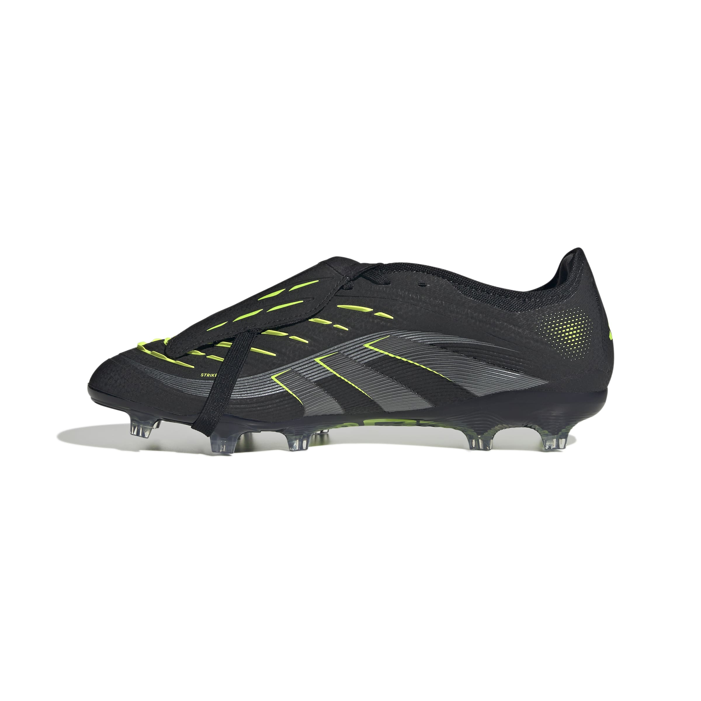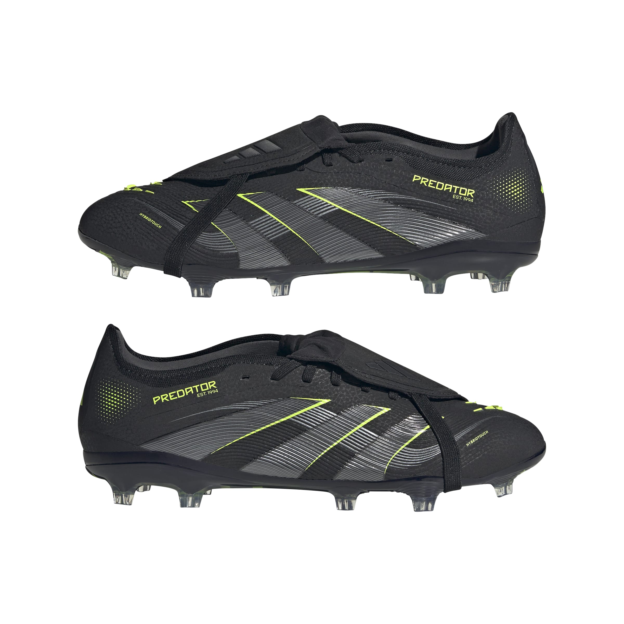 Discover the difference between aiming to score and knowing you will with adidas Predator boots that are crafted for goals. These Pro football boots have a flexible HybridTouch upper with a fold-over tongue and grippy rubber Strikeskin fins that help control every strike of the ball. Turn them over and you'll find a full-length Controlplate outsole designed to keep you stable on dry grass.